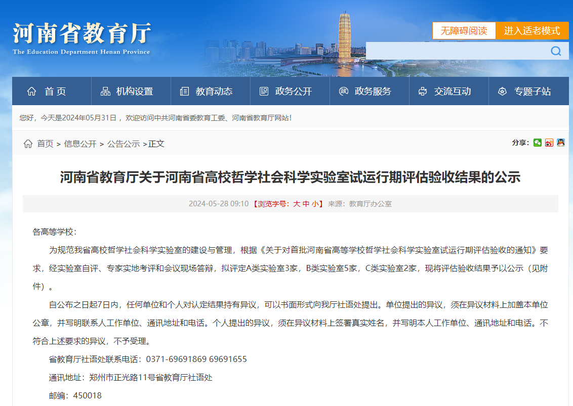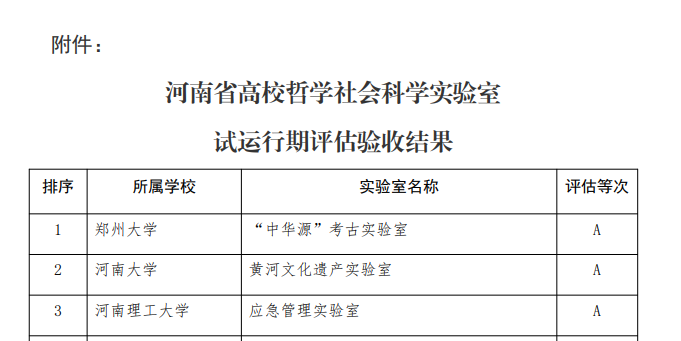近日,河南省教育廳對首批河南省高校哲學社會科學實驗室試運行期評估驗收結果進行了公示,經實驗室自評、專家實地考評和會議現場答辯,評定A類實驗室3家。其中,鄭州大學“中華源”考古實驗室獲評,并位列全省首位,其彰顯了近年來我校在考古學科建設方面取得的可喜成績。