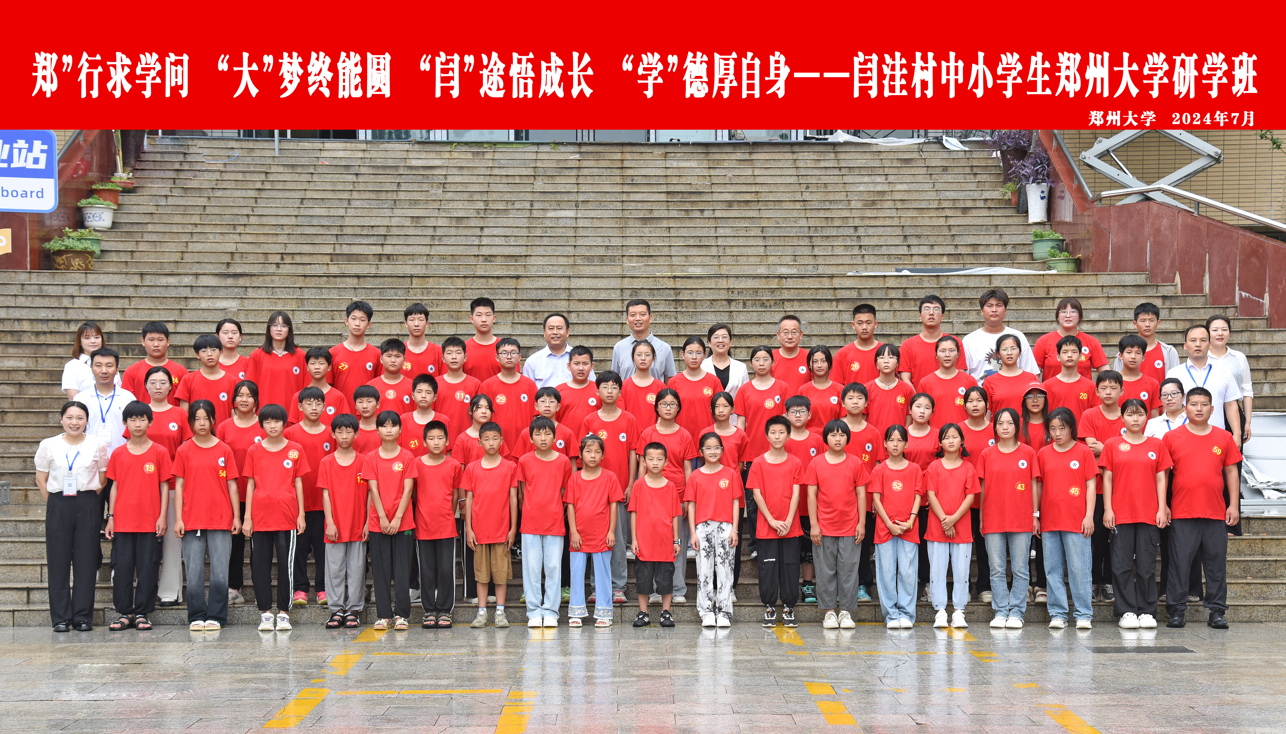 教育筑夢,賦能鄉村振興。7月5日,閆洼村中小學生鄭州大學研學班在南校園順利開營。鄭州大學黨委組織部相關負責同志,鄭州大學駐閆洼村第一書記盧紀富,繼續教育學院、干部培訓中心相關負責同志出席開營儀式。來自鄭州大學定點幫扶村——駐馬店市泌陽縣雙廟街鄉閆洼村的60余名中小學生走進鄭州大學,開啟一場為期一周的深度研學之旅。
