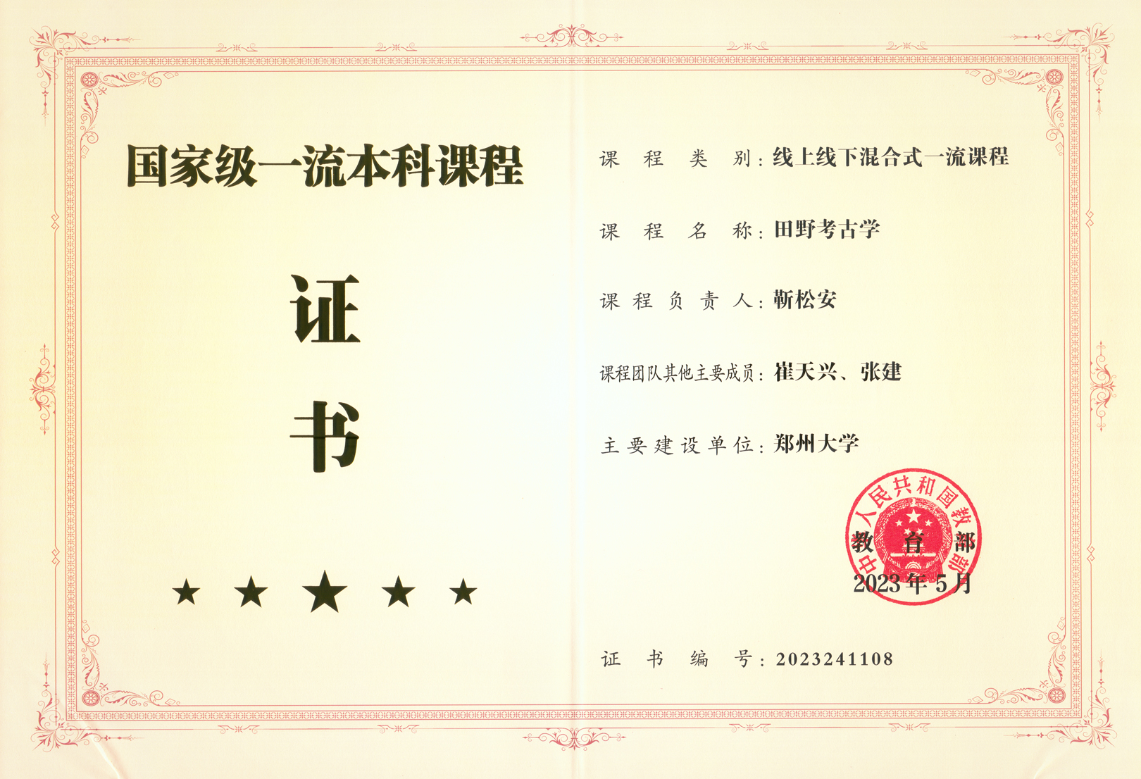 《田野考古發掘虛擬仿真教學實驗》國家級一流本科課程證書