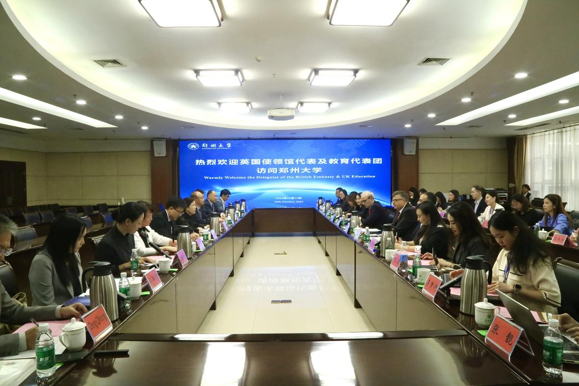 倪樂思感謝學校的熱情接待。他表示,英方非常重視中英高校之間的合作交流,愿意在高等教育資源引進、學術與人文交流等方面提供支持,在英方高校中廣泛宣傳鄭州大學的學科優勢和合作需求,擔當起鄭州大學與英方高校雙向溝通的橋梁。