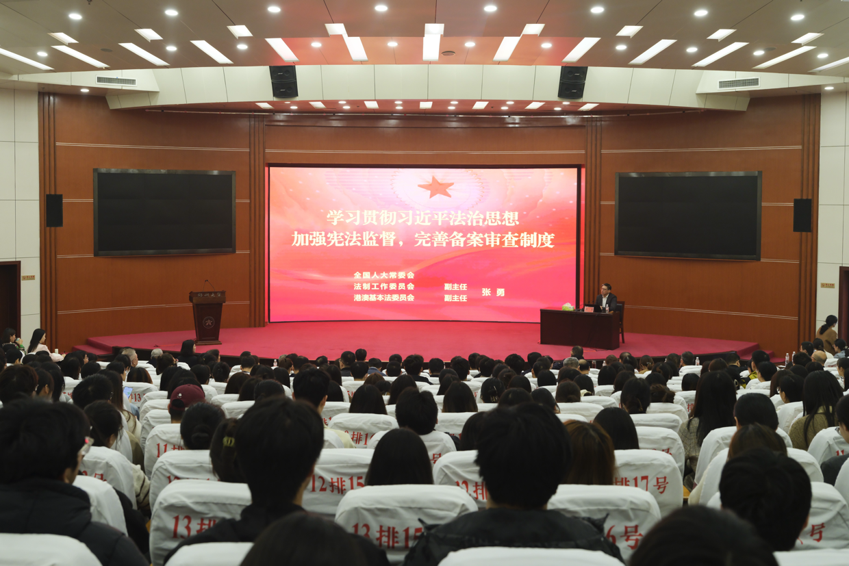 隨后,張勇以《學(xué)習(xí)貫徹習(xí)近平法治思想加強(qiáng)憲法監(jiān)督完善備案審查制度》為題開展了專題講座。他全面介紹了憲法監(jiān)督制度的作用和意義,新時(shí)代備案審查制度建設(shè)的發(fā)展與成效、面臨的挑戰(zhàn)和下一階段著力推進(jìn)的工作,明確提出了完善和加強(qiáng)備案審查制度的主要任務(wù)和具體要求。