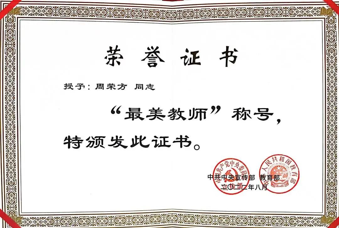 獲全國“最美教師”榮譽(yù)稱號