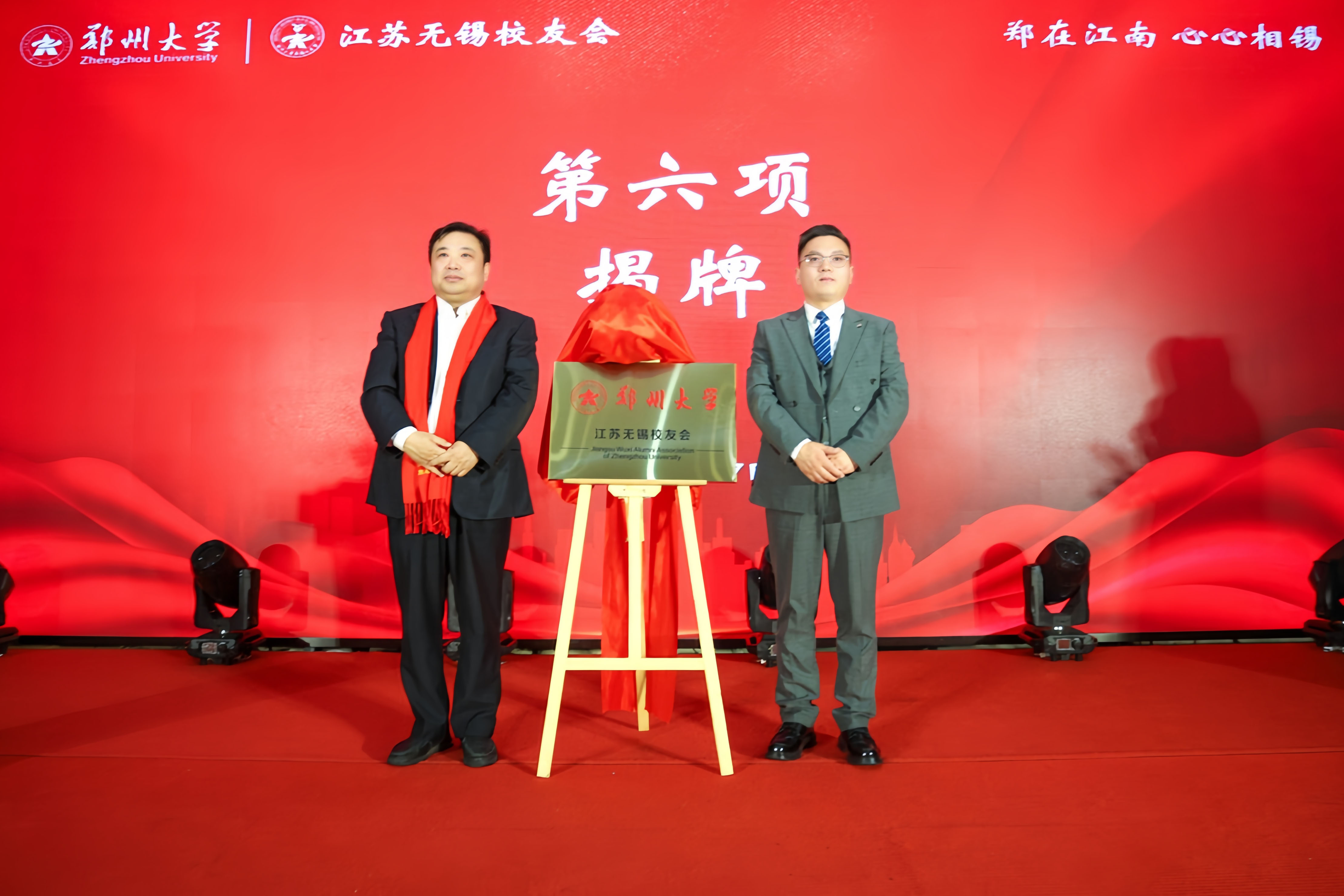 胡少偉致辭并為江蘇無錫校友會揭牌、授旗、贈送校訓紀念品。他代表學校對江蘇無錫校友會的成立致以熱烈祝賀,并向無錫校友致以親切問候。他從發展歷程、人才培養、學科建設、科研創新成果等方面介紹了鄭州大學近年來的發展情況。他指出,學校的發展與進步離不開校友的關心與支持,校友的高度是衡量學校水平的重要標準之一。他對無錫校友會提出三點希望:一是不忘初心,筑牢根基。完善組織架構與規章制度,規范校友組織運行。二是守正創新,突破發展。充分整合校友資源,立足地方特色,加強校友聯系,共促事業發展。三是講好鄭大故事,傳遞母校精神。秉持“求是擔當”校訓,“篤信仁厚 慎思勤勉”的校風,發揮自身優勢,探索產學研合作路徑,助力母校一流大學建設。