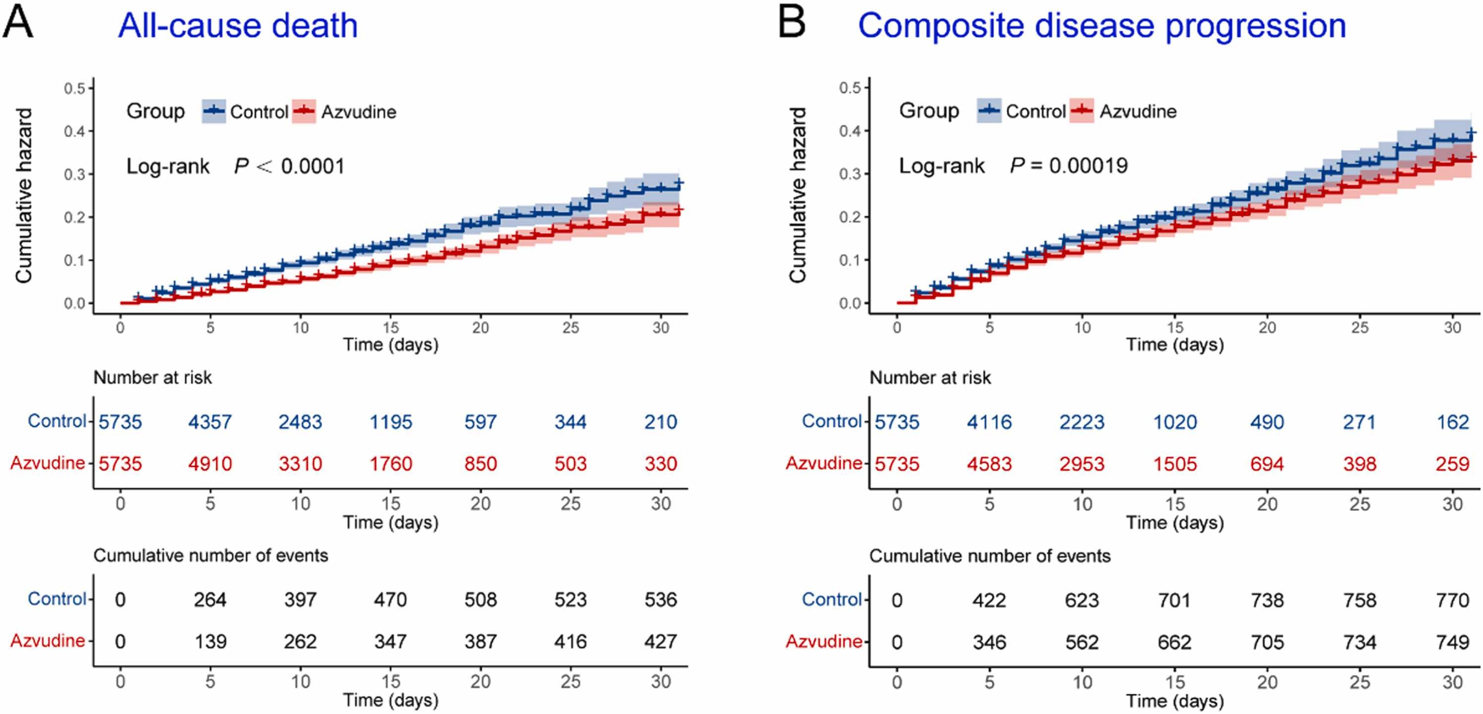 以“Real-world effectiveness and safety of azvudine in hospitalized patients with SARS-CoV-2 infection: A multicenter, retrospective cohort study”為題的成果發表在傳染病學頂尖期刊《Journal of Infection》上。文章指出,阿茲夫定片作為中國自主研發的首個口服抗新冠病毒藥物,雖然在中國獲批用于治療新冠,但其臨床證據主要來自小規模研究或單中心試驗,缺乏大樣本、多中心的真實世界研究數據。余祖江教授團隊聯合河南省9家醫療機構,開展了阿茲夫定片治療新冠病毒感染的真實世界臨床研究。通過對32864例新冠病毒感染住院患者進行傾向評分匹配,最終納入5735例接受阿茲夫定片的患者和5735例接受常規治療的患者進行研究。相較于常規治療組,阿茲夫定片可顯著降低新冠病毒感染患者32%的全因死亡風險及12%的復合疾病進展風險。與常規治療相比,阿茲夫定治療組不良事件發生率可接受,動態監測顯示肝腎功能指標可快速恢復。研究進一步通過七項敏感性分析驗證了上述結果的穩健性。鄭州大學余祖江教授與??嗽菏繛橥ㄓ嵶髡?,一附院任志剛主任醫師、楊蒙召碩士生、蘇冠月博士、南陽市中心醫院錢國武副主任醫師、河南省胸科醫院袁義強教授為共同第一作者。