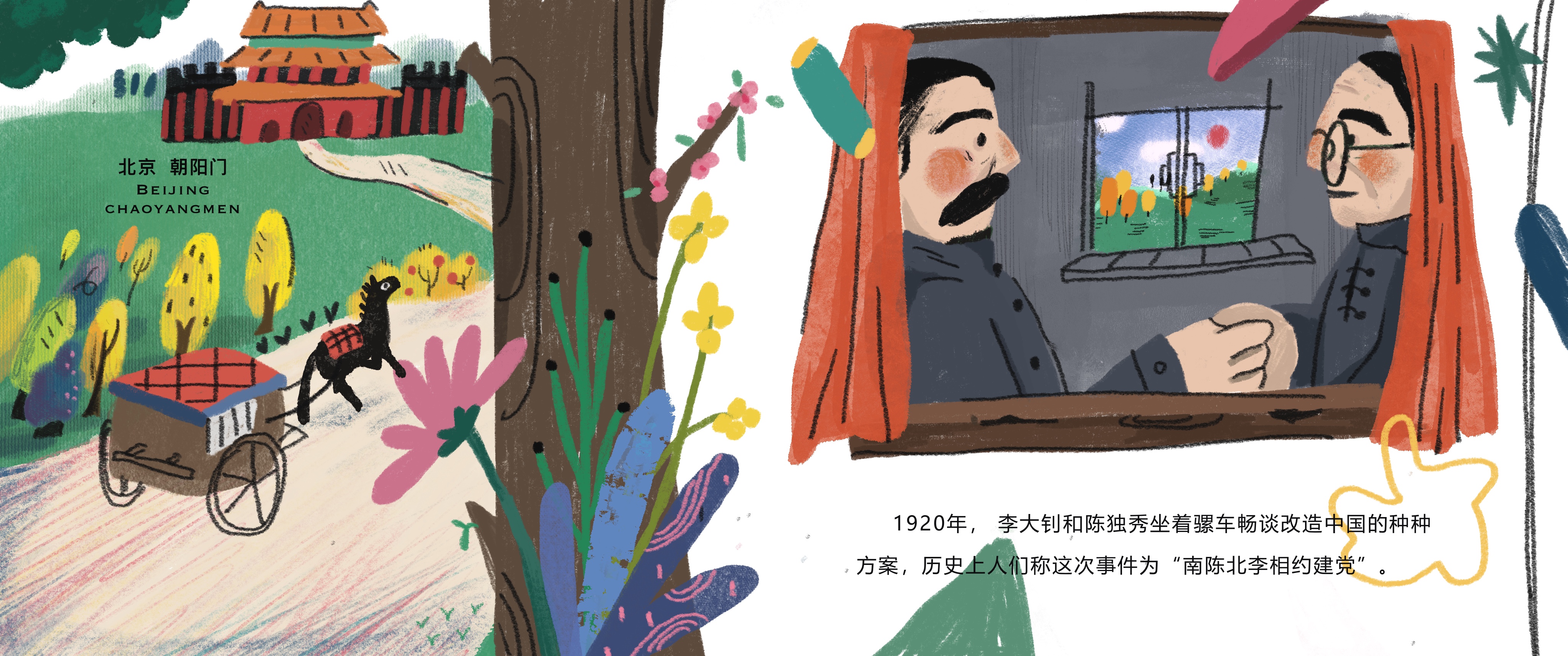 “他們是時代的一道光。”談及繪本中“南陳北李相約建黨”事件,張興華動情地說。創作黨史系列作品的過程中,也是張興華深入學習黨史、理解黨史的過程,她說:“通過創作的過程,我也希望自己去追求光、靠近光、成為光,也能跟著前輩們的步伐不斷前進。”