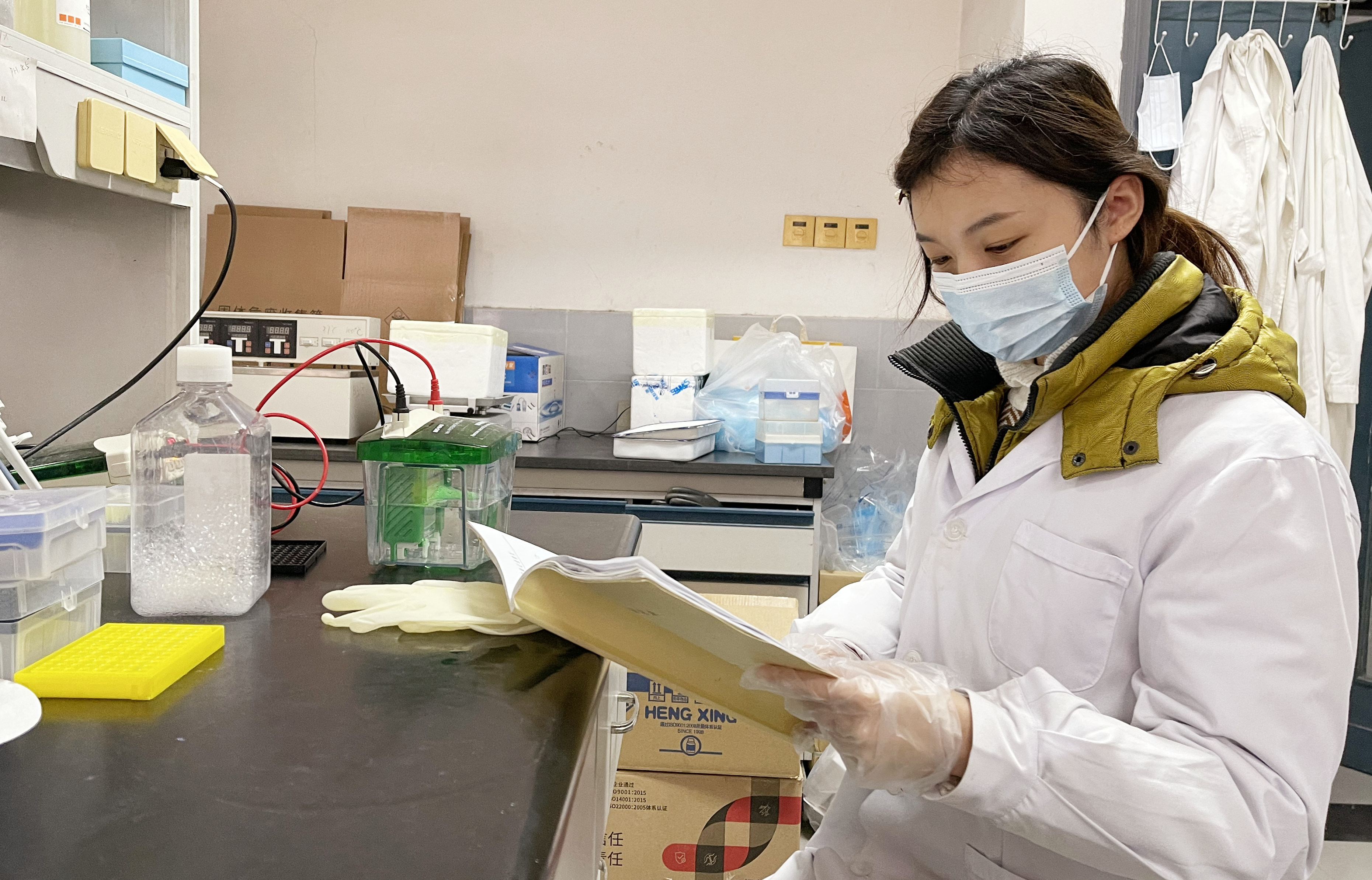 公共衛(wèi)生學(xué)院的大樓,由于少了一大批支援抗疫一線的師生們而顯得有些安靜。然而,走進(jìn)大樓實(shí)驗區(qū)卻是另一番景象,寒假堅持留校繼續(xù)科研工作的研究生們,身穿白色工作服依然在忙忙碌碌。他們或在超凈工作臺前聚精會神地操作,或者有條不紊地完成實(shí)驗,亦或在緊張、期待中目不轉(zhuǎn)睛地觀察實(shí)驗結(jié)果。
